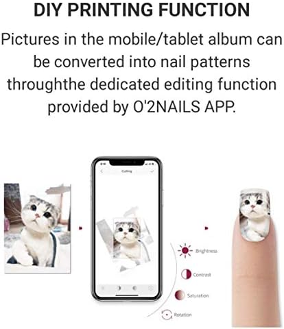 A mini portable smart device that can print any pattern on the natural or artificial nails, Control wirelessly through an Free O2Nails Mobile App via Smart phone or Tablet (Android or IOS). Package included: O2Nails Mini Digital Nail Art Printer H1, AC Power Adapter (US Plug), Ink Cartridge (FM10), Print Gel (PG 4), Top Seal Gel, Artificial Nail Holder, Mini LED Nail Lamp, Nail Cleanser Pad, Nail Guard Sticker, USB-C Power Cable, User Manual.