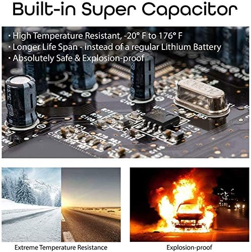 SUPERCAPACITOR & PARKING MONITOR: Power is delivered with the help of a supercapacitor, a premium alternative to a lithium-ion battery which features an enhanced temperature resistance to hot and cold climates.With the parking monitor feature, the dash camera will automatically turn on and record when the car camera detects vibration OR dash cam will capture frames for a time lapse video for 24/7. Please connect the smart hardwire kit to activate the parking mode.