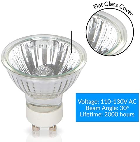 DURABLE AND STANDARD SIZE: Aluminum with Glass Cover. Diameter: 2” (5.1cm), Length: 2.15” (5.5cm), Shape: MR16, Base: GU10 Twist-N-Lock or Twistline (10mm Diameter). Pack of 10